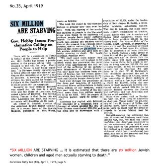 Six Million Starving Jews in 1919, from a Texas Newspaper, and Jews Hustle Funds from Christians